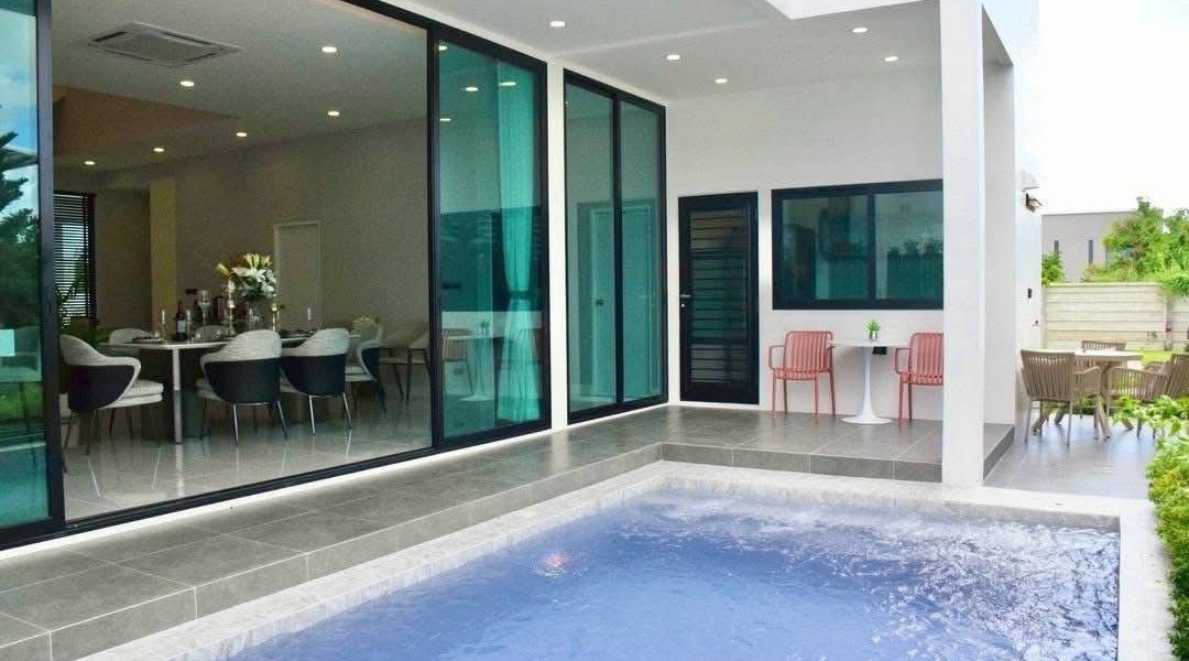 Thamber Pool Villa is the perfect choice for those seeking a luxurious residence in a peaceful location, close to major attractions in Pattaya. Surrounded by international schools, shopping centers, golf courses, and all essential conveniences.